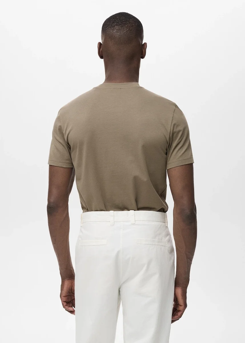 Úzký střih. Elastická tkanina. Lehká bavlna. Kulatý výstřih. Rovný lem. Krátké rukávy. Základní design. Stretch střih. Elastická bavlněná tkanina. Bavlněná tkanina. Standardní délka. Udržitelná bavlna. Slim silueta. 95 % bavlněná tkanina. Krátké rukávy. Kulatý límec. Krátká délka rukávů. Pracujeme na snížení dopadu výroby oděvů na planetu. Pěstování udržitelné bavlny omezuje používání chemických produktů. Šetří také vodu, energii a udržuje zemědělskou půdu čistou. Udržitelné materiály. Na míru šitý design. Ústřední téma