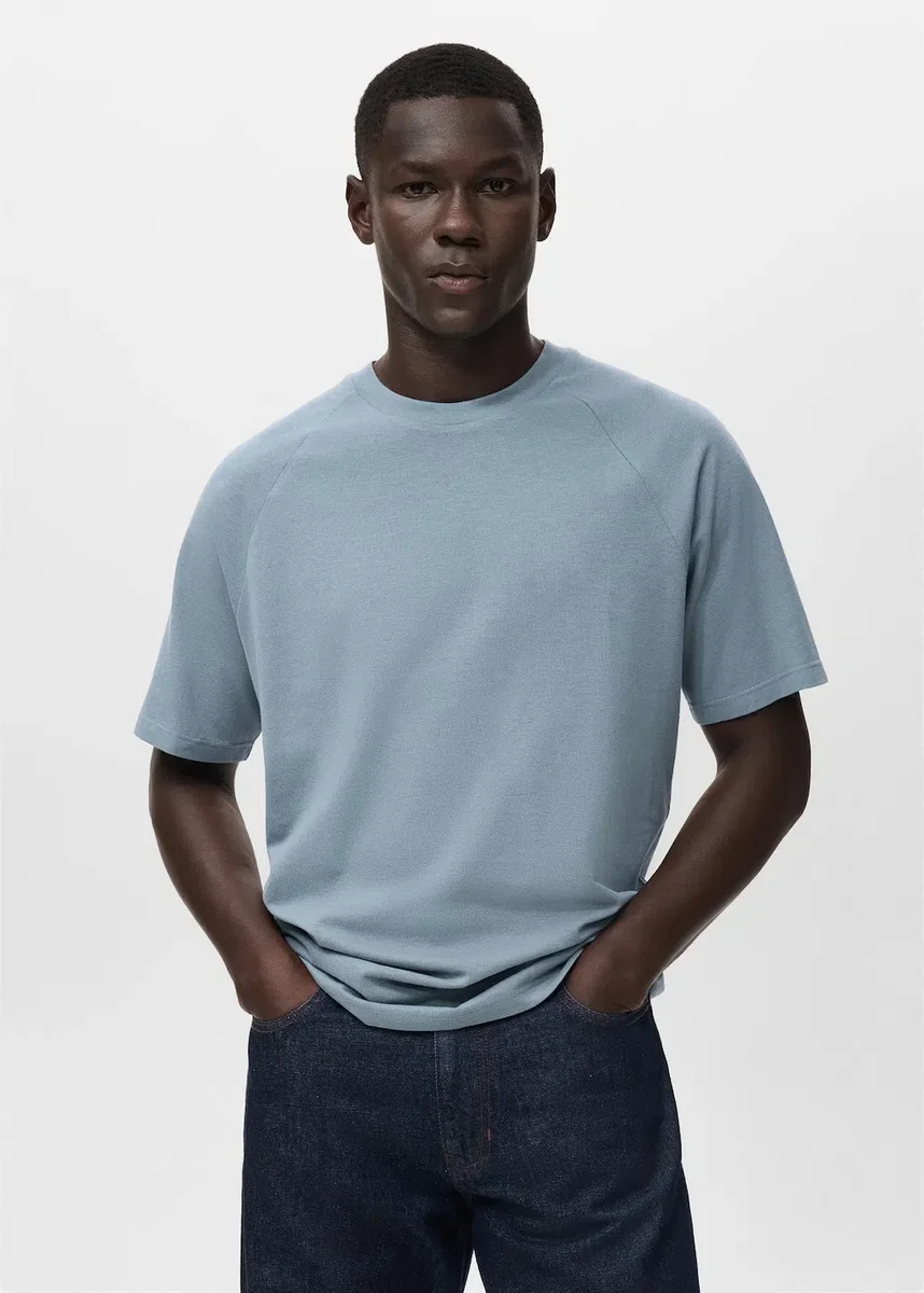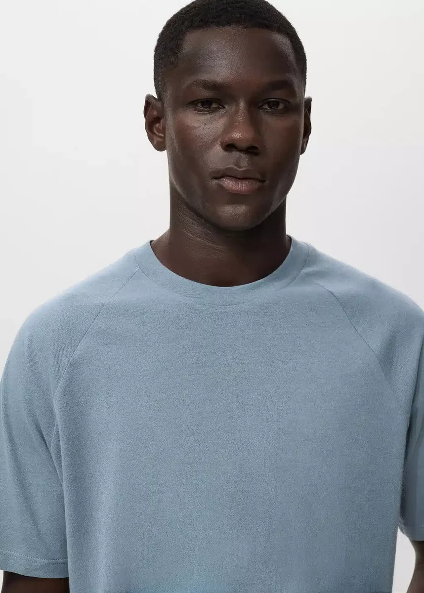 Volný střih. Směs bavlny a lnu. Kulatý výstřih. Krátké rukávy. Rovný lem